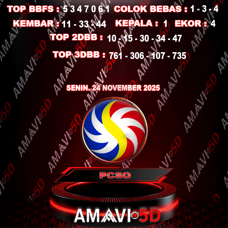 ★PREDIKSI TOGEL PCSO 24 NOVEMBER 2025★ Selamat Datang dan Selamat Bergabung di Situs Prediksi Togel Online. Permainan Togel Online saat ini telah menarik banyak perhatian para bettor di Indonesia. Jika dulunya Anda harus menikmati permainan togel melalui bandar togel darat, maka sekarang ini Anda hanya perlu mempercayakan AMAVI5D sebagai Bandar Togel Online Resmi dan Terpercaya. Melihat semakin tingginya minat para pecinta togel online, kami menyediakan Situs Prediksi Togel Online dan Bocoran Togel Jitu yang bisa Anda jadikan sebagai acuan sebelum melakukan pemasangan angka togel.